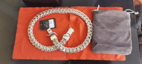 Плетение «Бисмарк» известно своей прочностью и выразительной геометрией. Такая цепь отлично смотрится как самостоятельно, так и в сочетании с крупными подвесками. Благодаря продуманной конструкции она комфортно лежит на шее и не перекручивается. А в сочетании с нанесённой позолотой придаёт изделию тёплый, эффектный оттенок, визуально приближая его к золоту.